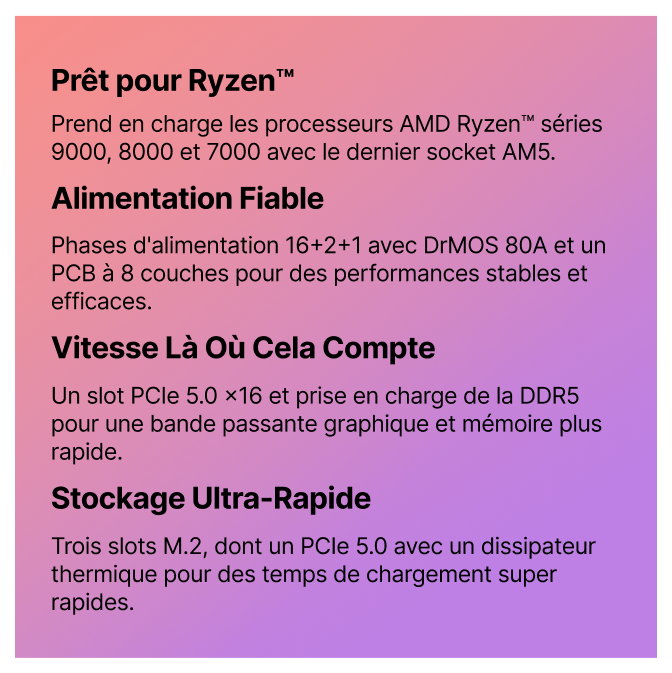 Carte mère gaming AMD® X870E ATX Wi-Fi 7 avec cache et RGB