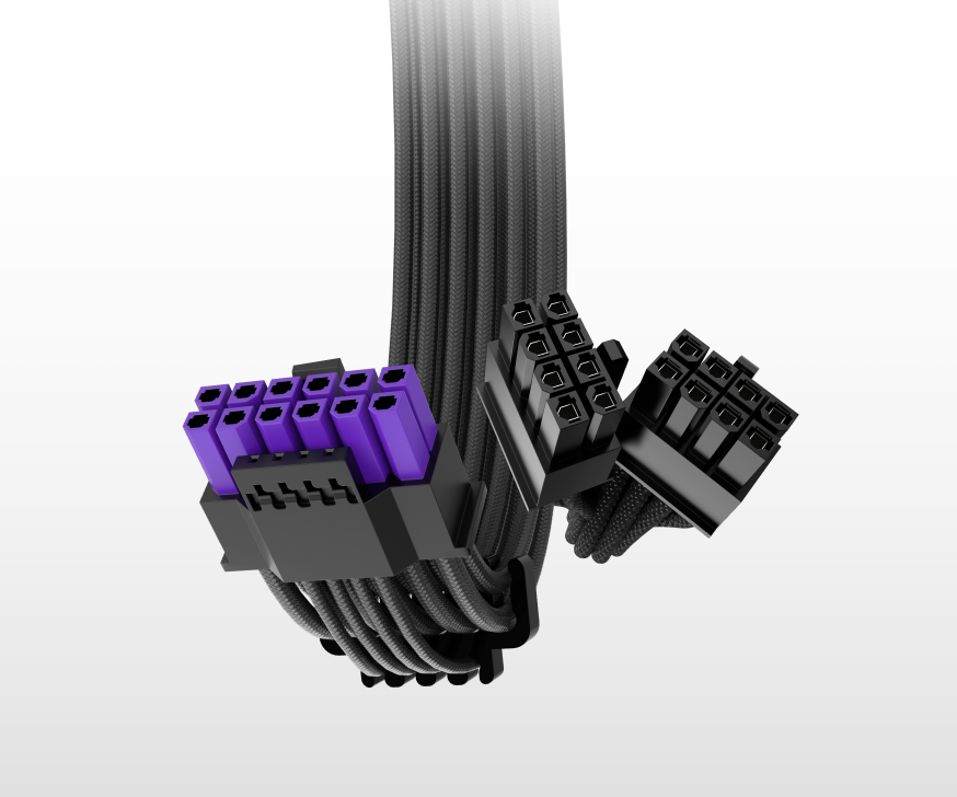- Completamente modulare con cavi goffrati: Utilizza solo i cavi necessari, con un design pulito e compatto e cavi resistenti e flessibili per una gestione semplificata.